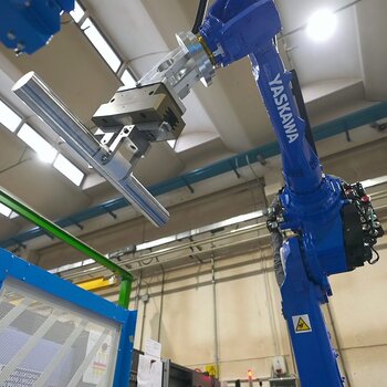 Obsluha více strojů je atraktivní pro strojní parky s dlouhou dobou obrábění jednoho dílce - roboty s poměrně dlouhým dosahem jsou instalovány uprostřed uspořádání obráběcích strojů nebo se automaticky pohybují mezi stroji instalovanými na dráze, portálu nebo dokonce automaticky řízeném vozidle - všechny tyto komponenty jsou součástí širokého portfolia společnosti Yaskawa.