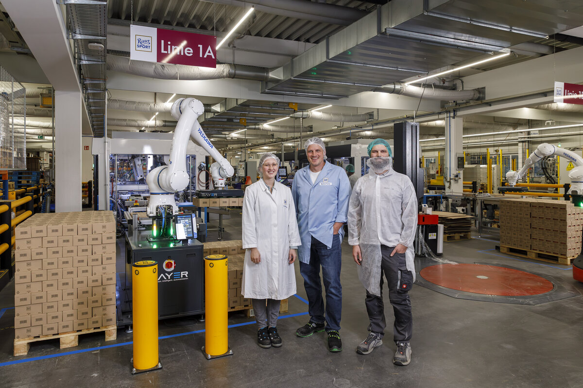 Palettizing systems from Bayer with Yaskawa Cobots at chocolate manufacturer Ritter