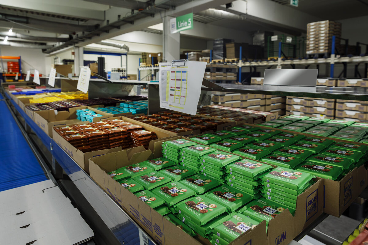 Before the sweet treats from the production of Alfred Ritter GmbH & Co. KG can finally be delivered, they must be packaged at the logistics site in Reichenbach near Stuttgart (Germany). More specifically, this means boxing the popular Ritter Sport chocolate bars and other primary-packaged chocolate specialties in shelf cartons or displays for retail, and final palletizing of the boxes for transport by truck. However, especially for this final step in the packaging chain, until recently they still a lacked an efficient and, above all, flexible automation solution to supplement the central palletizer at more distant locations, e.g. at the loading gate.